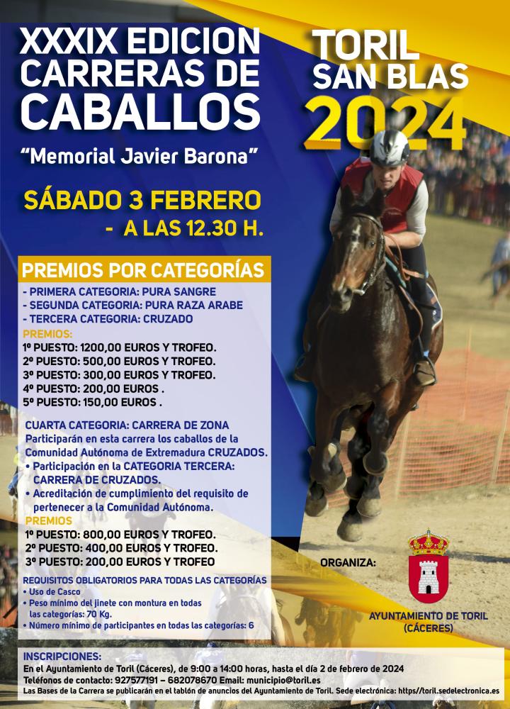 CARTEL CARRERAS DE CABALLOS SAN BLAS 2023- BASES- FICHA DE INSCRIPCION